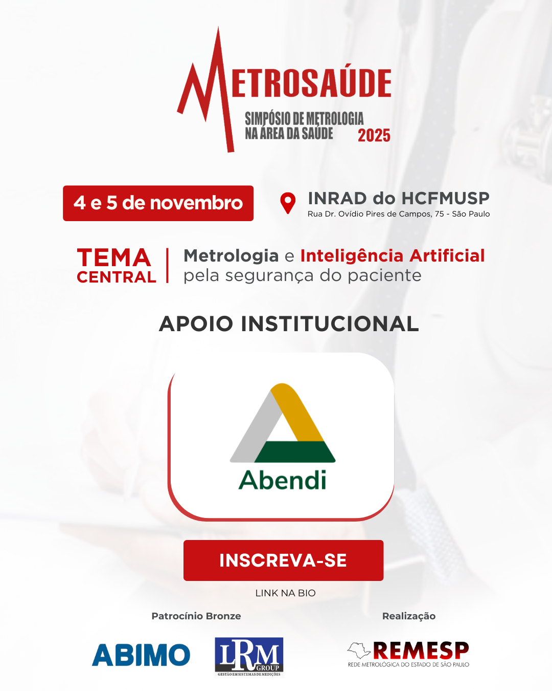 A 14ª edição do MetroSaúde – Simpósio de Metrologia na Área da Saúde, será nos dias 04 e 05 de novembro de 2025, no Centro de Treinamento do InRad – Instituto de Radiologia HCFMUSP, em São Paulo.